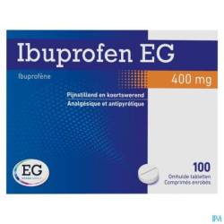 - De werkzame stof in Ibuprofen EG is ibuprofen, 400 mg per tablet.