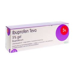 - De werkzame stof in dit geneesmiddel is ibuprofen. Ibuprofen Teva 5% gel bevat 5 g ibuprofen per