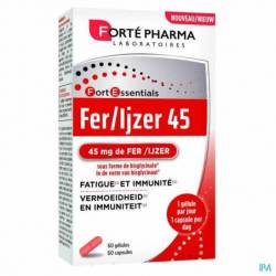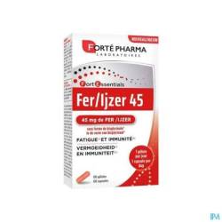 De Laboratoires Forté Pharma hebben Ijzer 45 ontwikkeld, een formule op basis van ijzerbisglycinaat (45 mg), voor een goede opname door het organisme.