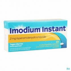 Met de snel oplosbare smelttabletten van Imodium® Instant gaat u voorbereid op reis en wordt uw vakantie niet overschaduwd door ongewenste aanvallen van diarree. De orodispergeerbare tabletten met een aangename muntsmaak smelten in slechts enkele seconden op uw tong en zijn daarom gemakkelijk en zonder water in te nemen. Dit maakt ze bijzonder handig voor uw reisapotheek en voor onderweg. Imodium® Instant tabletten bevatten de werkzame stof loperamide (loperamidehydrochloride) waarmee de symptomatische behandeling van reizigersdiarree, acute maar ook chronische diarree veilig, snel en doeltreffend kan worden behandeld. Imodium®Instant smelttabletten normaliseren de overmatige darmactiviteit, zodat uw stoelgang weer vaster wordt en de symptomen verdwijnen. Hiermee wordt uitdroging door verlies van vocht en elektrolyten voorkomen. Imodium® heeft een transitnormaliserend en antisecretoir effect. In overleg met uw arts kan Imodium® Instant ook worden voorgeschreven bij behandeling van diarree bij het prikkelbaredarmsyndroom. Imodium® is een geneesmiddel dat zonder voorschrift verkrijgbaar is. Zonder gluten en lactose. Lees altijd de bijsluiter.