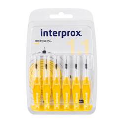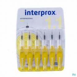 Interprox Mini Geel is speciaal ontwikkeld voor het reinigen van de ruimten tussen tanden vóór in de mond. Cariës (gaatjes) en tandvleesontstekingen beginnen vaak tussen tanden en kiezen. Deze ruimte reinig je het meest effectief met een interdentaal borsteltje. Een borsteltje is effectiever dan tandenstokers of rubbersticks. De ragers van Interprox zijn voor dagelijks gebruik en gaan langer mee. Omdat de interdentale ruimten tussen tanden en kiezen varieert, is het belangrijk om voor iedere specifieke situatie het meest geschikte borsteltje te kiezen. Vraag je mondzorgprofessional welke maat het meest geschikt is. Interprox Mini Geel heeft een praktisch, flexibel handvat en beschikt over een cylindrisch gevormde borstelkop met PHD maat 1.4.