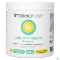 Intoleran Daily Fibre Support bestaat uit prebiotische vezels van de guarboon gecombineerd met gemberextract. Het product dient ter aanvulling op de dagelijkse vezelinname en ondersteunt de darmwerking en een regelmatige stoelgang. Intoleran Daily Fibre Support is ontwikkeld door onze eigen diëtisten op basis van de nieuwste wetenschappelijke inzichten en wordt beschouwd als het ideale vezelsupplement. De guarboonvezel staat ook bekend als PHGG (Partially Hydrolized Guar Gom) en SunFiber®. Intoleran daily fibre support is smaakloos en 100% oplosbaar in je eten en drinken. In tegenstelling tot andere vezels die een gelachtige structuur aan voedsel geven, heeft de guarboonvezel geen invloed op de smaak en textuur. Je kunt het daarom goed toevoegen aan o.a. water, yoghurt, sap, kwark, soep of een smoothie. Hiermee is Intoleran daily fibre support bijzonder gebruiksvriendelijk en kun je het gemakkelijk opnemen in je dagelijkse routine.