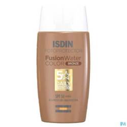 Fusion Water Colour Bronze is een getinte zonnebrandcrème voor het gezicht. Dankzij de ultralichte formule beschermt het je huid dagelijks tegen UVB- en UVA-stralen (SPF 50). Het biedt een natuurlijke dekking die imperfecties verbergt, de toon verenigt en zorgt voor een mooi effect. Het beste? Het irriteert de ogen niet. Natuurlijke dekking die imperfecties verbergt en je huidskleur egaliseert, nu verkrijgbaar in 3 verschillende tinten: Light, Medium en Bronze. Hoge bescherming SPF 50 klinisch geëvalueerd in het laboratorium en in reële omstandigheden van hoge zonnestraling. De ultralichte textuur met een zijdezachte finish trekt onmiddellijk in zonder een vettig laagje achter te laten.