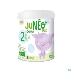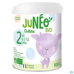 Junéo chèvre BIO 2ème âge is een biologische melkpoeder voor zuigelingen vanaf 6 maanden. Junéo chèvre wordt gemaakt in de Vendée met 39% volle geitenmelkpoeder van biologische boerderijen. Biologische landbouw sluit het gebruik van synthetische chemicaliën en GGO's in geitenvoer uit. Geitenmelk is een alternatief voor koemelk, met een andere samenstelling: de vetbolletjes zijn minder dicht en het caseïnegehalte is lager.