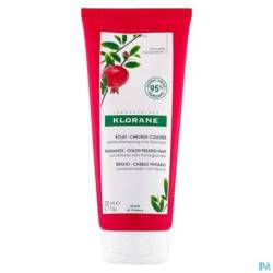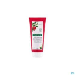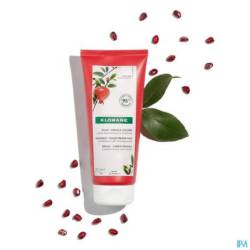 De laboratoria van Klorane hebben de kleurherstellende en verlengende conditioner met medicinale Granaatappel, geformuleerd om voor gekleurd haar te zorgen door zintuiglijkheid en doeltreffendheid te combineren. Samengesteld uit 95% ingrediënten van natuurlijke oorsprong, ontwart en voedt het gekleurd haar terwijl het op natuurlijke wijze hun glans verlengt dankzij het extract van granaatappelschillen. Dit actief bestanddeel, zeer rijk aan tannines, voorkomt het vervagen van de kleur en verlengt de intensiteit en levensduur ervan. De smeltende, goed verdraagbare formule, biologisch afbreekbaar* en zonder siliconen, werkt op de punten en lengtes dankzij een zure pH die helpt om de haarschubben te sluiten. Vanaf het eerste gebruik is gekleurd haar gevoed, gemakkelijk te ontwarren en onthult het al zijn licht, alles dankzij een vegan formule*** verpakt in een tube van 50% gerecycleerd plastic.