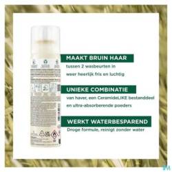 De Getinte droogshampoo van Klorane combineert verzachtende haver en beschermende Ceramideᴸᴵᴷᴱ met ultra-absorberende poedersoorten en pigmenten van natuurlijke oorsprong in een spray die geen witte sporen achterlaat op kastanjebruin tot donkerbruin haar. De extrazachte formule absorbeert overtollig talg en maakt het haar op milde wijze schoon. Deze praktische droogshampoo verfrist, beschermt en revitaliseert 12 uur lang*, en dat slechts in 2 minuten tijd. Zo kunt u bovendien ook de shampoobeurten spreiden. Gegarandeerd residu-vrij. Geschikt voor het haar van mannen en vrouwen.