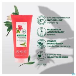 De Hibiscusbloem Douchegel is speciaal ontwikkeld om alle huidtypes te reinigen, zonder de huid uit te drogen. De formule rijk aan vetzuren en biologische Cupuaçuboter hydrateert de huid langdurig* en respecteert de huidbalans. De geltextuur vormt een licht schuim onder de douche en zorgt voor een schone, soepele en aangenaam geparfumeerde huid. De biologisch afbreekbare** vegan formule komt in een praktische tube met een ecologische dop:de dop is platter en bevat 40% minder plastic.*Langdurig gehydrateerde huid: +24% na 21 dagen - corneometrietest bij 16 personen.** Volgens de OECD301B -norm.***Zonder ingrediënten van dierlijke oorsprong.