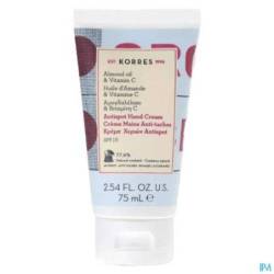 De Korres Handcrème Amandelolie & Vitamine C is een verzachtende en voedende handcrème, rijk aan vitamine C en antioxidanten die pigmentatie en donkere vlekjes op de handen aanpakken. De SPF15 zonbescherming helpt om bestaande vlekken te vervagen en de huid te bescherming tegen de vorming van nieuwe pigmentatiestoornissen. Zoete amandelolie en provitamine B5 herstellen en hydrateren de huid diepgaand voor zachte en soepele handen die niet kleverig aanvoelen.