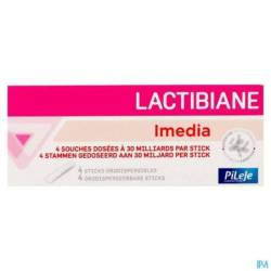 Lactibiane Imedia bestaat uit 4 microbiotische stammen gedoseerd aan 30 miljard per orodispergeerbare stick. Het orodispergeerbare poeder in de stick lost onmiddellijk op in de mond voor een snelle opname zonder water.