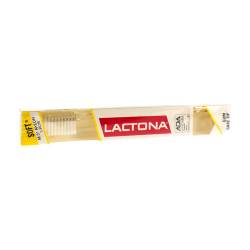 De ronde smalle borstelkop is opgebouwd uit 3 rijen filamenten en de steel is lang. Gekozen kan worden uit een versie met of zonder rubber tip aan het uiteinde van de steel.