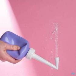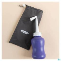 Het flesje kan ondersteboven gebruikt worden om water tussen de benen te spuiten, met de spuit richting het perineum. Een zachte waterstraal komt er uit om het perineum schoon te houden zonder pijn.