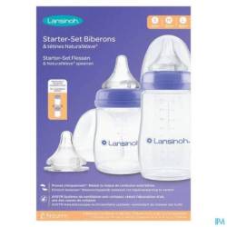 Starters set bevat: 2 flessen (1x 160 ml en 1x 240 ml), 3 spenen (1x S, 1x M, 1x L), 2 deksels.