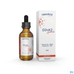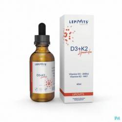 D3 + K2 liposomaal is een formulering die geoptimaliseerd is voor de opname van vi- tamine D en K. Dit voedingssupplement in druppelvorm bevat liposomale vitaminen van natuurlijke oorsprong in een oplossing met abrikozensmaak die veganistisch, koosjer en halal is gecertificeerd. De vitamine D wordt geëxtraheerd uit algen (Vi- ta-algae D®)[1] waardoor een zuivere cholecalciferolvoorziening (100% D3-vorm) wordt gegarandeerd en niet gebaseerd is op D3 van dierlijke oorsprong. Vitamine K wordt verkregen uit gefermenteerde sojabonen die een beter geassimileerde vita- mine K2 (menaquinon MK-7) leveren[2]. Deze vitaminesynergie is verwerkt in een liposomale oplossing om de absorptie, stabiliteit en biologische beschikbaarheid in het lichaam te optimaliseren. De liposomale formulering zorgt ervoor dat vita- mine D3 en K2 de maag kunnen passeren zonder beschadigd te raken. Intestinale absorptie van liposomen wordt bevorderd doordat zij de chylomicronroute binnen de enterocyten doorlopen en via het lymfestelsel circuleren. De cellulaire absorptie wordt voor vitamine D (x3) en K (x10) verhoogd door endocytose of door versmelting van het liposomenmembraan met het celmembraan. Deze vloeibare liposoomvorm maakt het ook gemakkelijker om het supplement in te nemen, vooral voor kinderen en ouderen die moeite hebben met het innemen van capsules of tabletten. Lipo- somaal D3 + K2 is een alternatief dat de bloedplasmaspiegels van vitamine D en K maximaliseert in vergelijking met standaardsupplementen.