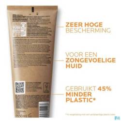Zonnemelk SPF50+ met zeer hoge bescherming SPF50+ voor een zongevoelige huid of huid met neiging tot zonneallergie. Beschermt de huid tegen vroegtijdige tekenen van huidveroudering en biedt een zeer hoge breedspectrum bescherming. Met een plastic tube die 45% minder plastic gebruikt.