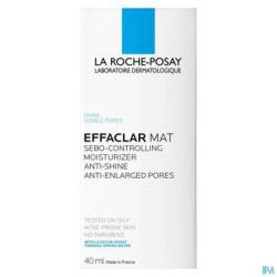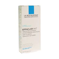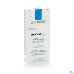 Effaclar Mat is een sebumregulerende hydraterende verzorging die de poriën verkleint en glimmen actief tegengaat. Door de werking van sebulyse wordt overtollige talg tegengegaan. Absorberende microbolletjes en perliet matteren de huid langdurig, en glycerine zorgt voor hydratatie. Een vette, glimmende huid wordt zichtbaar mat en poriën lijken zichtbaar kleiner.