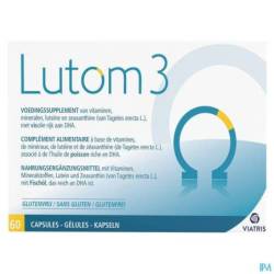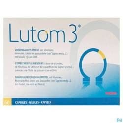 LUTOM 3 is een voedingssupplement dat bestaat uit een ratione-le combinatie van luteïne en zeaxanthine (van Tagetes erecta L.), met visolie rijk aan meervoudig onverzadigde omega-3-vetzuren (EPA + DHA), vitamines, zink en koper. Luteïne en zeaxanthine (van Tagetes erecta L.) zijn stoffen die het menselijke lichaam niet kan omzetten, maar die worden geabsorbeerd door de voeding door hun aanwezigheid in de natuur, met name in groene blad-groenten. Zodra luteïne en zeaxanthine in het lichaam geabsorbeerd zijn, worden ze verdeeld over de weefels, met name van de ogen, waar ze worden gedeponeerd in het netvlies, voornamelijk ter hoogte van de macula (gele vlek). De omega-3-vetzuren zijn zogenaamde "essentiële" stoffen, omdat het lichaam deze niet zelf kan omzetten. In de ogen worden deze stoffen selectief en mogelijk in het netvliesweefsel gedeponeerd. Omega-3 (DHA) dragen bij tot de instandhouding van een normaal gezichtsvermogen.