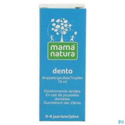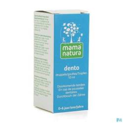 mama natura® dento druppels is een homeopathisch geneesmiddel dat gebruikt wordt ter verlichting van symptomen die optreden tijdens het doorkomen van tanden, waaronder pijnlijk tandvlees, oorpijn, prikkelbaarheid, rusteloosheid, lichte koorts en dunne stoelgang.