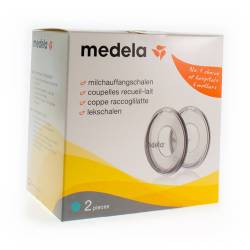 Medela lekschalen hebben een tuitje zodat je de opgevangen moedermelk gemakkelijk kunt weggieten.