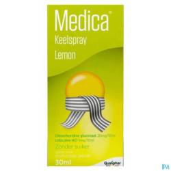 Medica keelspray lemon is een spray voor plaatselijke werking in mond en keelholte. Het is een ontsmettingsmiddel en plaatselijk pijnstillend middel. Medica keelspray lemon is aangewezen bij: