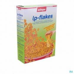 Milupa lp-flakes zijn eiwit- en fenylalaninearme ontbijtgranen, zonder melkeiwitten en lactose, met vezels en vitamines. Bevat tarwe en soja