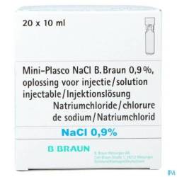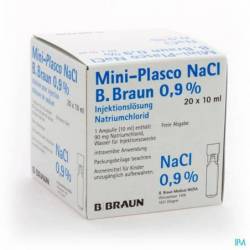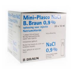 De werkzame stof in Mini-Plasco NaCl B. Braun 0,9 % is Natriumchloride: 0,09 g (Mini-Plasco van 10 ml) of 0,18 g (Mini-Plasco van 20 ml)