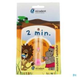 Spelenderwijs tanden poetsen!De tandartsen raden aan twee minuten lang de tijd te nemen om je gebit mooi en grondig te reinigen. Deze praktische zandloper van Miradent is de ideale motivatie voor de mondverzorging bij je kinderen. Met de zuignap is de zandloper gemakkelijk op te hangen op alle gladde oppervlakken zoals de spiegel boven de wasbak.