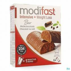 2 Modifast Intensive repen met melkchocolade smaak bevatten voldoende van alle essentiële voedingsstoffen om 1 hoofdmaaltijd op een dag mee te vervangen.