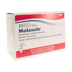 Molaxole® is een behandeling van constipatie waarvan het werkzame bestanddeel macrogol 3350 is, dat water bindt en het volume van de ontlasting vergroot, waardoor de stoelgang normaal wordt.