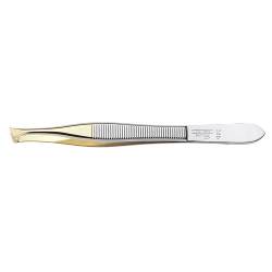 De vergulde tip heeft niet alleen een mooi uitzicht maar klampt de fijne haartjes ook veel beter vast. Dankzij de schuine punten kunt u veel gemakkelijker alle haartjes verwijderen, ook in de gevoelige zones. De pincet is gemaakt in Solingen.
