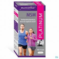 MSM of methylsulfonylmethaan is een natuurlijke en organische zwavelverbinding, zoals die in de dagelijkse voeding voorkomt. Verwerken, verhitten, langdurig opslaan en koelen van voedingsmiddelen kan het gehalte aan zwavel doen afnemen. Met MSM PLATINUM in V-tabletten kan het zwavelgehalte in het lichaam aangevuld worden op een natuurlijke manier. MSM PLATINUM in V-tabletten bevat met OptiMSM® een uitstekende, wetenschappelijk onderzochte kwaliteit.