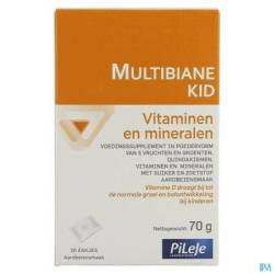 Multibiane kid Vitaminen en mineralen is een voedingssupplement in poedervorm van 5 vruchten en groenten, quinoakiemen, vitaminen en mineralen.