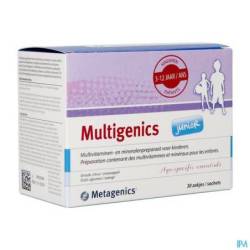 Voedingssupplement met multvitamines, mineralen en andere stoffen speciaal ontwikkeld om te voldoen aan de behoeften van kinderen onder 12 jaar. Multigenics JUNIOR bevat alle elementen noodzakelijk voor een optimale ontwikkeling. Ze bevat o.a. biotine, vitamines B1, B2, B3 en B5 die bijdragen aan een normaal energieleverend metabolisme.