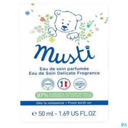Musti Verzorgingswater parfumeert op delicate wijze kinderen en baby's, vanaf de geboorte(1), in alle veiligheid. Laat de mythische en tijdloze geur van Mustela achter op de huid, het haar en de kleding.