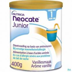Neocate Junior is een voeding voor medisch gebruik. Dieetvoeding voor kinderen bij koemelkallergie, meervoudige voedselallergie of andere indicaties waarbij een elementair dieet wordt aanbevolen. Neocate Junior is gemaakt op basis van vrije aminozuren. Aminozuren zijn de bouwstenen van eiwit, alleen het afweersysteem kan niet reageren op deze aminozuren omdat ze te klein zijn. Het is geproduceerd in een koemelkeiwitvrije omgeving. Uitsluitend te gebruiken onder medisch toezicht, na alle voedingsopties te hebben overwogen, met inbegrip van borstvoeding.