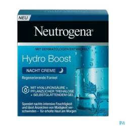 Er zijn verschillende factoren - waaronder weersinvloeden en stress - die een droge en onrustige huid veroorzaken. Door het gebrek aan vocht wordt de beschermende barrière van de huid aangetast met als gevolg een ruwe, doffe huid die zijn gezonde uitstraling verliest. Neutrogena® Hydro Boost Nachtcrème met hyaluronzuur, 100% plantaardige trehalose en egaliserende memory gel formule laat tekenen van vermoeidheid verdwijnen en zorgt voor intensieve hydratatie. Het opgeslagen vocht in de huidcellen komt vrij wanneer het nodig is. De huid wordt 24 uur lang intens gehydrateerd. Herstellend olievrij masker dat geen plakkerig gevoel achterlaat.