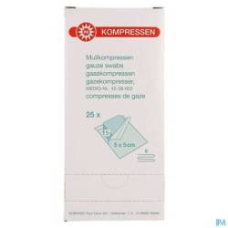 De swabs met binnengevouwen gesneden zelfkant zijn gemaakt van gaas dat voldoet aan de norm EN 14079 type 17. De gaasstaafjes worden met de gevouwen zijde naar boven in de steriele zakjes geplaatst voor een gemakkelijke verwijdering. 20 steriele zakjes met elk 5 gaasstaafjes zijn verpakt in een opvangverpakking met een handige verwijderingssleuf.