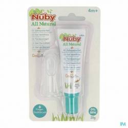 De tand- en tandvleesgel van Nûby™ Citroganix™ is volledig natuurlijk en speciaal ontworpen om tandjes en tandvlees van baby's tussen 4 en 24 maanden veilig schoon te maken. Het is veilig indien ingeslikt, en beschermt tegen bacteriën die tandbederf veroorzaken dankzij het actieve bestanddeel Citroganix™. Dankzij het bijgeleverde vingertandenborsteltje leert uw kind aan een goede mondhygiëne te hebben. De silicone massagevinger plaatst zich op uw vinger. De kleine silicone massageborsteltjes laten toe zacht de eerste tandjes van je kleinte te borstelen en het tandvlees te masseren. Voor het dagelijks poetsen van tandvlees en tandjes: Breng een kleine hoeveelheid gel aan op de vingertandenborstel. Maak een zachte en verticale beweging om tanden en tandvlees te poetsen. Spoel de mond. Gebruik bij doorkomende tandjes de tandgel van Nûby™ Citroganix™ (+4 maanden). Citroganix™ is een natuurlijk extract van de Murcia sinaasappel. Het bezit antibacteriële eigenschappen (melkzuur) die kinderen beschermen tegen bacteriën en gisten. De bacteriën en gisten zijn verantwoordelijk voor rode billetjes of tandbederf. Met Citroganix™ bescherm je je kindje hier op een natuurlijke wijze tegen.