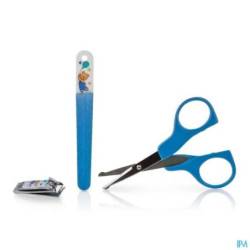 Wanneer je baby's nageltjes groeien moeten die met de nodige zorg bijgevijld of geknipt worden. Deze nagelverzorgingsset van Nûby™ is de perfecte kit om de fragiele vingertjes van je baby op een veilige manier te verzorgen. De set bevat 1 nagelschaartje met afgeronde randen, 1 nagelknipper voor kindjes en 1 unieke plastieken nagelvijl speciaal ontworpen voor pasgeboren baby's. De leuke nagelverzorgingsset is er in het blauw.