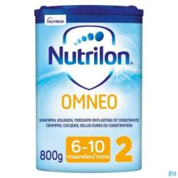 Nutrilon® Omneo 2 is een voeding voor medisch gebruik. Geschikt vanaf 6 maanden, als onderdeel van een gezonde, gevarieerde voeding. Niet geschikt als enige voedingsbron. Gebruik Nutrilon® Omneo 2 alleen onder medisch toezicht. De eerste 6 maanden na de geboorte is Nutrilon® Omneo 2 niet geschikt als vervanging van borstvoeding. Nutrilon® Omneo 2 is een dikkere voeding. Pas de speen hierop aan, indien nodig. Borstvoeding is de beste voeding voor je baby.