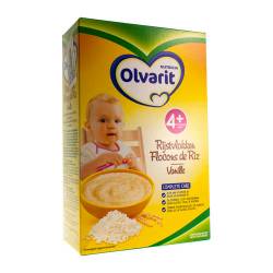 Voor baby's vanaf 4 maanden bieden wij Olvarit Rijstvlokken vanille. Dit zijn heerlijke glutenvrije graanvlokken met vanillesmaak, rijk aan vitamine B1. Naast de nodige energie geven ze je baby ook een aangenaam verzadigdgevoel.