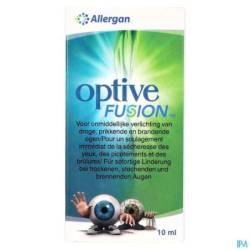 Steriele multidosis oplossing. Een unieke combinatieformule voor onmiddellijke verlichting, superieur comfort en aanhoudende bescherming tegen de symptomen van droge ogen.Bevat Purite als bewaarmiddel dat uiteenvalt in de natuurlijke traancomponenten.Optive Fusion is compatibel met alle soorten contactlenzen.