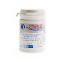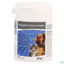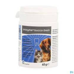 Orozyme Bucco Fresh PlaqueOff is een innovatie op het gebied van de verbetering van slechte adem en verbetering van de conditie van tandvlees en het gebit bij honden en katten. Orozyme Bucco Fresh PlaqueOff helpt het kleven van de tandplak voorkomen en weekt de aanslag los. Na enkele weken behandeling kunt u verbetering merken in conditie van de mond- en tandhygiëne van uw hond of kat.
