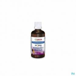 Hydroalcoholisch extract aan 10% van de hele echinacea-plant (Echinacea purpurea (50%), hydroalcoholisch extract aan 10% de propolis (50%). Alcool 60% vol.