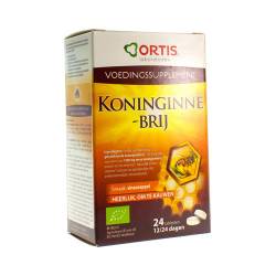 Poeder van maïssiroop*; gelyofiliseerde koninginnebrij* 333,4 mg/tabl. - equivalent aan 1000 mg verse koninginnebrij; poeder van tarwesiroop*, natuurlijk aroma, stearine* (vetzuur van plantaardige olie); antiklontermiddel: siliciumdioxide.