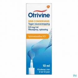 Otrivine 0,5 mg/ml: - mag niet gebruikt worden bij kinderen jonger dan 2 jaar - dient bij kinderen van 2 tot en met 12 jaar gebruikt te worden onder toezicht van de ouders.