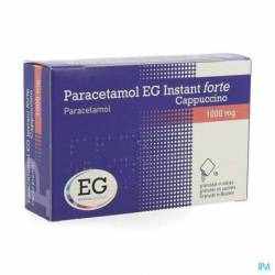 De werkzame stof in Paracetamol EG Instant forte Cappuccino is paracetamol. 1 zakje bevat 1000 mg paracetamol.