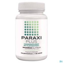 Paraxi Plus bestrijdt darmparasieten en schimmelinfecties in het maag- en darmstelsel. Kruidnagel voorkomt het huisvesten van darmparasieten. Okkernoot wordt al honderden jaren gebruikt door de Indianen als een antiparasieten, antibacterie, antischimmel en antiviraal middel. Ze zijn aangevuld met venkel dat al sinds de Romeinen wordt geroemd omwille van haar krachtige werking op de spijsvertering. Venkel doodt virussen en bacteriën en is effectief tegen darmparasieten. Wilde marjolein beschermt de darm tegen gisten en schimmels. Het is bovendien ontstekingsremmend en heeft sterke antioxidatieve eigenschappen. Extra knoflook beschermt tegen parasieten, gisten en schimmels waaronder candida albicans, een schimmelinfectie in het maag- en darmstelsel. Paraxi Plus heeft een helend effect op de darmwand en kan ook worden gebruikt als een natuurlijke ontstekingsremmer.