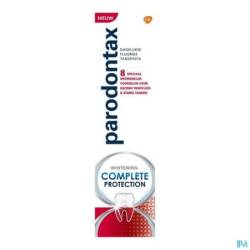 Parodontax Complete Protection Whitening heeft 8 voordelen voor gezond tandvlees & sterke tanden. En gaat daarmee verder waar een gewone tandpasta stopt. Het is 4x effectiever in het verwijderen van tandplak*, en helpt jou daarbij met het volgende: Gezond tandvlees, voorkomt slechte adem, houdt de aansluiting tussen tanden en tandlvees in stand, diepe reiniging tussen de tanden, maakt schoon voor een fris gevoel, helpt de natuurlijke witheid van tanden te behouden en met fluoride voor sterker tandglazuur.* de voornaamste oorzaak van tandvleesproblemen, vergeleken met een gewone tandpasta, bij 2x per dag poetsen, na 6 maanden gebruik