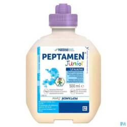 Peptamen junior is een enterale volledige voeding, isocalorisch (1,0 kcal/ml), op basis van gehydrolyseerde wei-eiwitten, met 60% vet van MCT, voor kinderen vanaf 1 jaar.