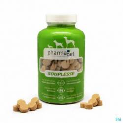 Voedingssupplement verrijkt met concentraat uit natuurlijke grondstoffen zoals haaienkraakbeen en groenlipmossel, die soepele gewrichten ondersteunen; makkelijk om toe te dienen door de vorm, geur en smaak.